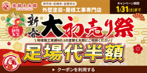 こんにちは。 伊丹市・尼崎市の外壁専門店「伊丹の塗替え太郎」です。 新年を迎え、塗替え太郎では 今だけ