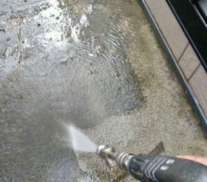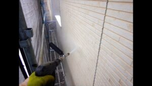 塗装前に、外壁の汚れやカビを高圧洗浄機で洗い流します。