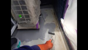 窓やドアをビニールで保護し、塗料がつかないようにします。