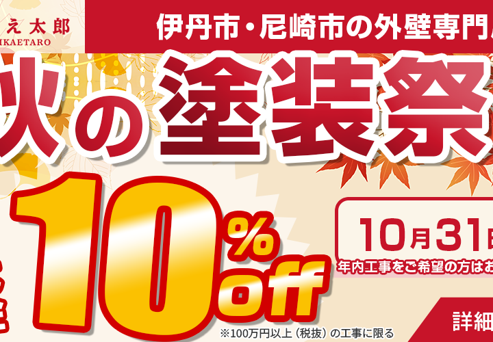 【伊丹市・尼崎市限定】秋の外壁塗装キャンペーン|工事代金10%OFF【10月31日まで】