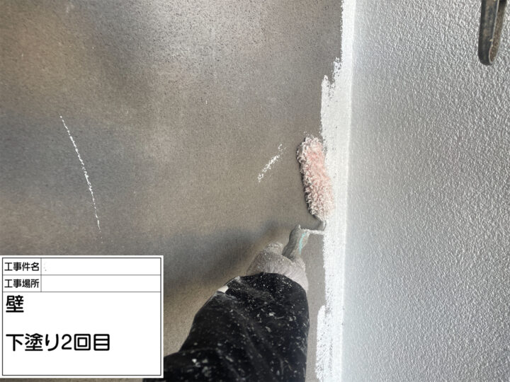 下地と塗料の密着度を上げるために下塗りを塗布します。