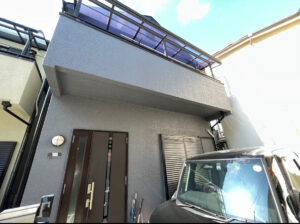 築年数の経過とともに、外壁には色あせや汚れの付着が目立ち、防水性の低下が見られました。