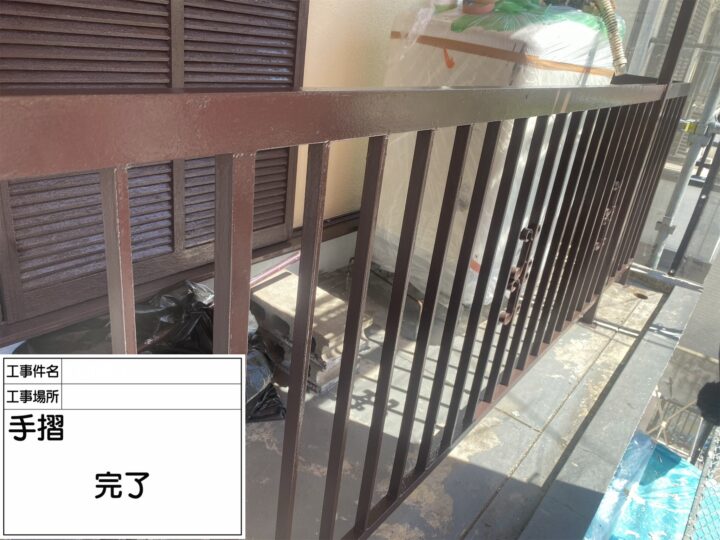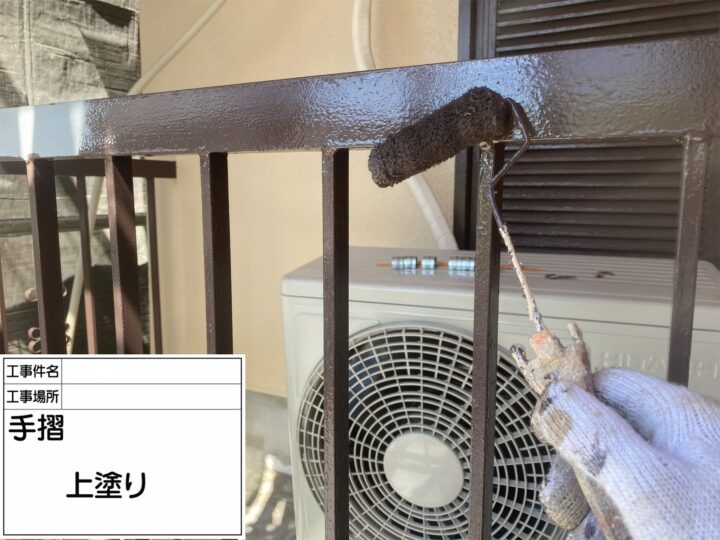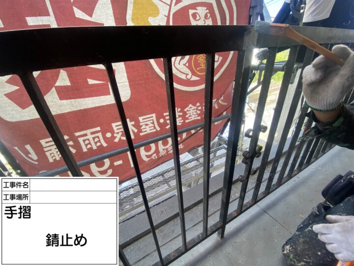 特に鉄部はケレン清掃で錆を除去後、錆止め塗料をしっかり塗布してから仕上げました。