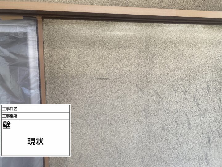 外壁は**かけ落とし壁(掻き落とし仕上げ)**で、剥がれやひび割れが多数発生