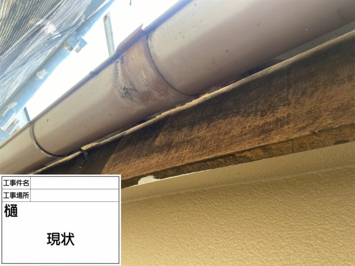 付帯部(雨樋・庇・破風板など)は塗膜がほとんど剥がれ落ちている状態